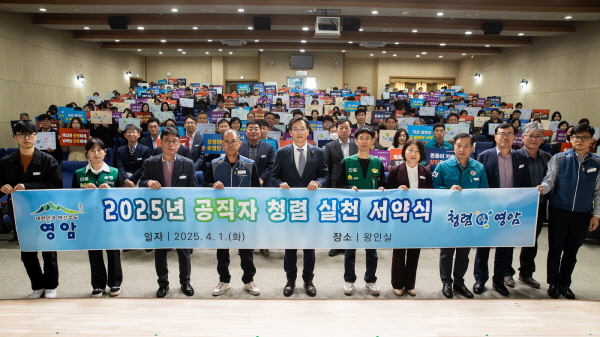 (전남=NSP통신) 강현희 기자 = 영암군 공직자들이 지난 1일 ‘청렴한 영암이 좋아요’ 캠페인을 열고 청렴한 조직문화 확산·정착 실천을 서약했다.