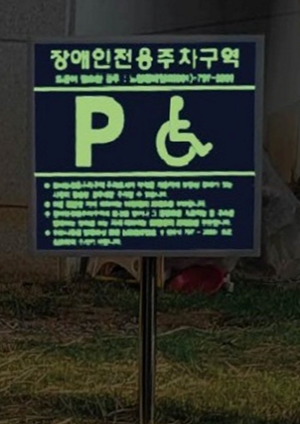 (전남=NSP통신) 김성철 기자 = 광양시가 야간에 장애인전용주차구역을 식별하기 어려워 발생하는 주차위반 등을 문제 해결하기 위해 전국 최초로 고휘도 금속(알루미늄) 축광 시트를 적용한 ‘장애인전용주차구역 야광 안내 표지판’을 설치했다.