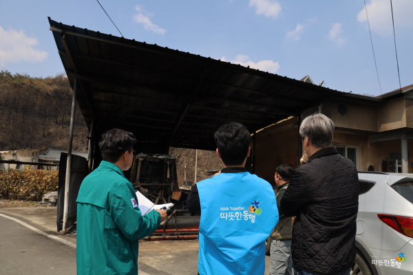 따뜻한 동행은 산불 피해를 입은 경로당 4곳을 직접 방문해 전소 2개소, 부분훼손 2개소의 피해 상황을 확인했으며 이 중 부분 훼손된 경로당 2곳에 대해 ‘드림하우스’라는 사업명으로 총 3천만 원 상당의 개보수를 지원할 예정이다.