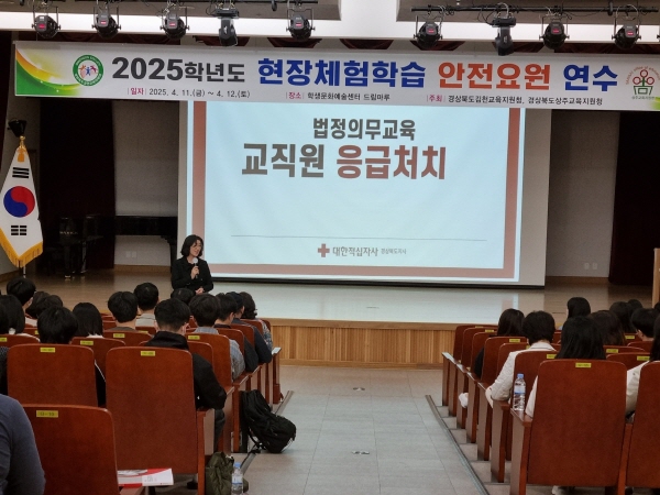 (경북=NSP통신) 김대원 기자 = 경상북도상주교육지원청(교육장 박은옥)은 지난 11일과 12일 2일간에 걸쳐 관내 초·중·고등학교 및 특수학교 현장체험학습 안전 업무 담당 교사 총 55명을 대상으로 ‘2025 현장체험학습 안전요원 연수’를 실시했다.
