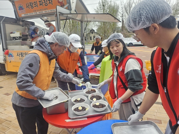 (경북=NSP통신) 김대원 기자 = 대경대 경찰탐정보안과와 대한민국공인탐정경호협회가 지난 13일 안동시다목적체육관에서 산불로 피해를 입은 이재민들에게 자장면 나눔 봉사활동을 펼쳤다.