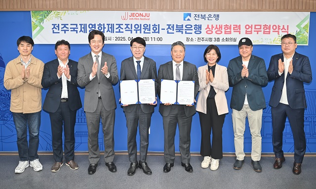 이날 협약식에는 전주국제영화제 우범기 조직위원장, 민성욱·정준호 공동집행위원장, 전북은행 백종일 은행장 등이 참석했다.