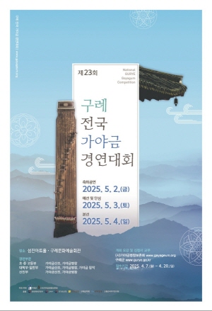 (전남=NSP통신) 김성철 기자 = 구례군은 가야금병창보존회(이사장 강정숙) 주관으로 제23회 구례 전국 가야금 경연대회가 오는 5월 3일~4일까지 양일간 개최한다고 밝혔다.