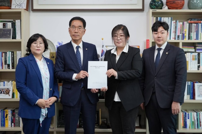 (경기=NSP통신) 김병관 기자 = 경기 안성시의회 최승혁, 이관실, 황윤희 민주당 의원들이 28일 국회를 방문해 환경노동위원회 간사인 김주영 국회의원(더불어민주당, 김포시갑)을 만나 면담을 했다.