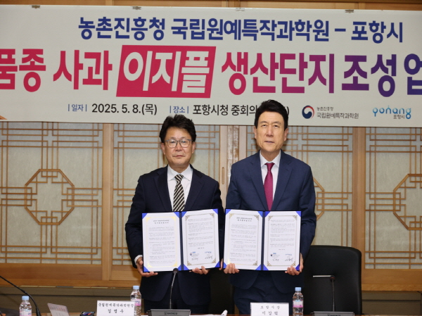 포항시·국립원예특작과학원, 신품종 사과 이지플 생산단지 조성 MOU 체결