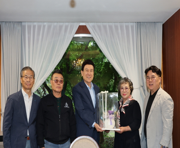 죽도시장 상인 대표들은 이날 간담회 자리에서 이강덕 시장에게 꽃을 전달하며 평소 현장 중심 행정을 이어온 데 대한 감사의 뜻을 전했다.