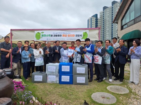 앞치마는 광양기후환경네트워크 회원들이 지역 내에서 폐현수막을 직접 수거한 뒤 세척·재단해 수확 작업에 적합하게 제작한 것으로, 관내 농가에 배부돼 매실 수확 현장에서 활용될 예정이다.
