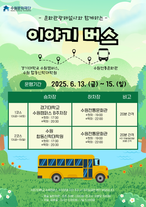(경기=NSP통신) 조현철 기자 = 경기 수원문화재단(대표 오영균)이 오는 13일부터 15일까지 ‘2025 수원 국가유산 야행’ 축제 기간 관람객의 편의를 높이기 위해 ‘이야기 버스’ 프로그램을 확대 운영한다.