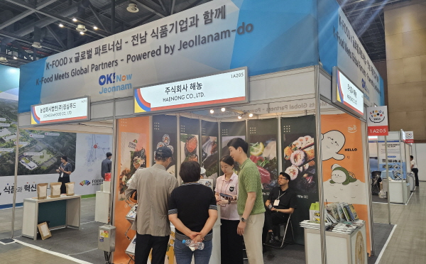 전남도는 이번 박람회에서 ▲정심푸드(고구마말랭이) ▲해농(김밥용 김·도시락김) ▲바다손애(김부각·건미역) ▲남도소반(해조류 페스토·오징어 스낵) 등 4개 업체의 제품을 선보였다. 이들 기업은 국내외 바이어들과 활발한 상담을 벌이며 수출 확대와 K-푸드 브랜드 제고에 기여했다.