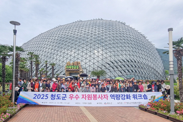(경북=NSP통신) 김대원 기자 = 청도군(군수 김하수) 자원봉사센터(센터장 홍봉옥)는 지난 12일과 13일 2일간 경남 거제시에서 우수 자원봉사자 150명이 참석한 가운데 ‘2025 우수 자원봉사자 역량강화 워크숍’을 개최했다.