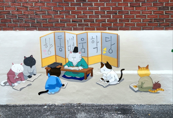 이번 사업은 향동 주민참여예산으로 추진된 것으로 향동을 대표하는 향교와 옥천서원, 유생 등의 이미지를 중심으로 벽화를 구성해 향동만의 역사성과 개성을 살렸다.