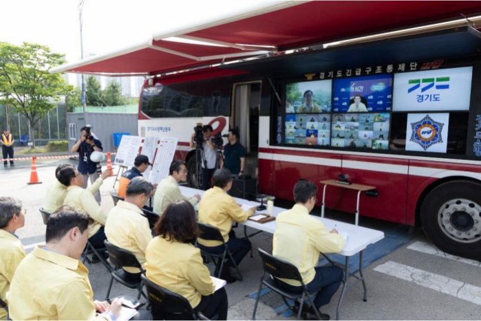 김동연 지사는 이날 복구 현장 소방지휘버스에 마련된 시스템을 통해 31개 시장 군수와 함께 여름철 재난 대비태세 점검을 주제로 긴급 영상회의를 주재했다.