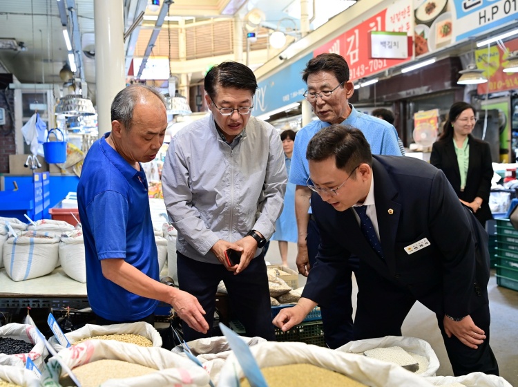 (경기=NSP통신) 김병관 기자 = 김대순 경기도 행정2부지사는 23일 ‘2025 경기 살리기 통큰세일’이 진행 중인 고양시 덕양구 원당시장을 방문해 행사 운영 현황을 점검하고 지역 소상공인들과 소통하는 시간을 가졌다. 이 자리에는 변재석 도의원도 함께했다.
