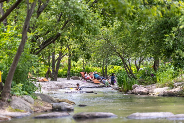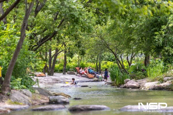 NSP통신-순천만국가정원 개울길에서 관람객이 휴식을 취하고 있다 (사진 = 순천시)