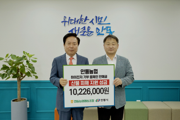 (경북=NSP통신) 김오현 기자 = 안동농협(조합장 권태형)은 지난 26일 산불 피해 복구를 위한 특별 캠페인 ‘하이진저를 담다, 안동에 닿다’를 통해 조성한 누적 판매금 1022만6000원을 안동시에 전달했다.