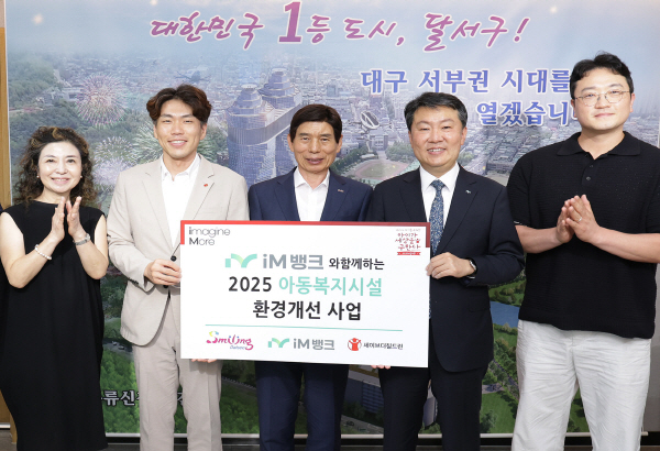 (경북=NSP통신) 김대원 기자 = iM뱅크(139130)는 지난 7일 달서구청(구청장 이태훈)에서 달서구청, 세이브더칠드런코리아와 함께 ‘아동복지시설 주거환경 개선사업’ 후원금 전달식을 가졌다.