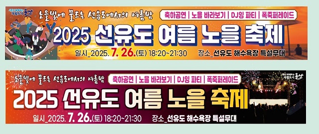 군산시 관계자는 “선유도는 자연경관이 수려한 고군산군도의 대표적인 관광지로, 축제를 통해 관광객들의 발길을 이끌 계획”이라며 “노을, 자연, 사람이 어우러지는 지속 가능한 해양관광의 새로운 사례를 제시하겠다”고 밝혔다.