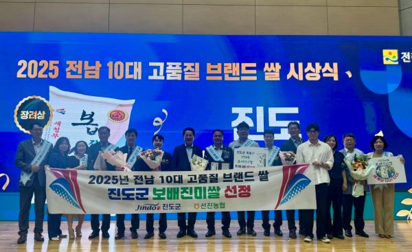 (전남=NSP통신) 김현 기자 = 전남 진도군은 전라남도가 주관한 ‘2025년 전남 10대 고품질 브랜드 쌀’ 시상식에서 진도군의 대표 쌀 브랜드인 ‘보배진미쌀’이 최초로 상을 받았다고 밝혔다.