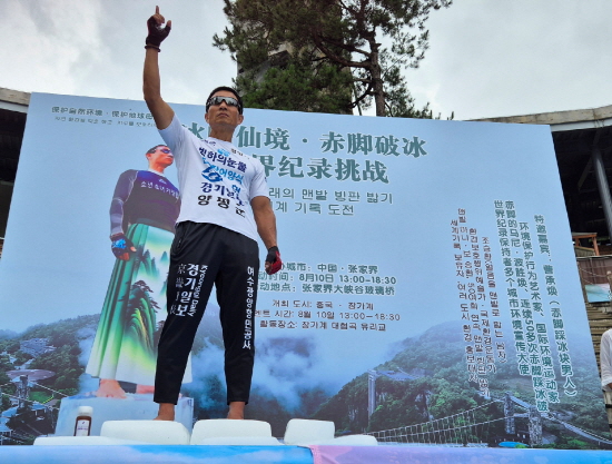 (전남=NSP통신) 김성철 기자 = 광양시 홍보대사이자 국제환경운동가로 활동 중인 ‘맨발의 사나이’ 조승환이 중국 장가계에서 또 한 번 세계를 놀라게 했다.