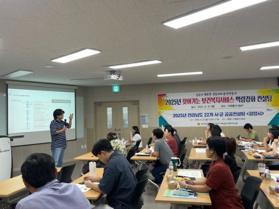 (전남=NSP통신) 김성철 기자 = 광양시가 지난 25일 광양시 자원봉사나눔터에서 읍·면·동 맞춤형 복지팀, 협의체 위원, 유관 사회복지시설 종사자 등 50여 명을 대상으로 ‘찾아가는 보건복지서비스’ 강화를 위한 지역 맞춤형 공공 컨설팅을 실시했다.
