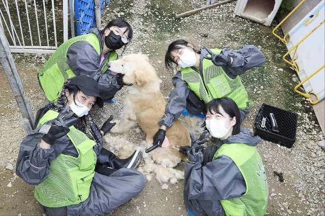 이들은 아침 일찍부터 모여 반려견들의 털을 손질하고 위생 관리를 도우며 무더위 속에서도 보호소 아이들이 청결과 건강을 위해 구슬땀을 흘렸다.
