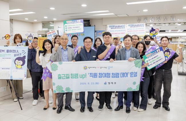 23일 아침 출근길, 서울 강서구청 청사가 ‘청렴’ 열기로 가득 찼다. 청렴 문화 확산을 위해 청사 1층 로비에 ‘출근길 청렴 업(UP) 캠페인’이 진행된 것.