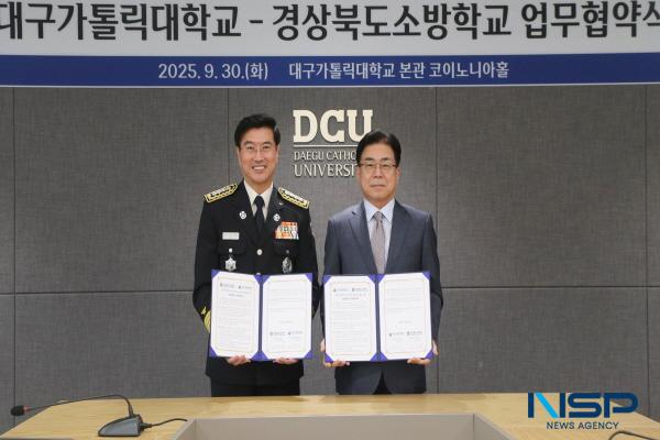 (경북=NSP통신) 김대원 기자 = 대구가톨릭대학교(총장 성한기)와 경상북도소방학교(학교장 이상무)가 지역과 함께 만드는 혁신과 상생의 미래를 위해 손을 맞잡았다.