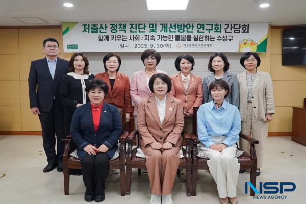 (경북=NSP통신) 김대원 기자 = 대구 수성구의회는 지난달 30일 ‘저출산 정책 진단 및 개선 방안 연구회’ 간담회를 개최했다. 이번 간담회는 저출산 문제의 현황을 진단하고 지역 차원에서 실현 가능한 대응 방안을 모색하기 위해 마련됐다.