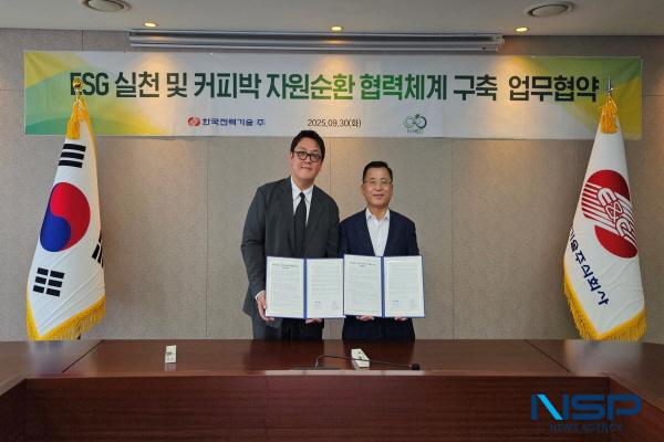 (경북=NSP통신) 김대원 기자 = 한국전력기술(사장 김태균, 이하 ’한전기술‘)은 지난달 30일 김천 본사에서 디앤에스에코(대표이사 김정원)와 ‘ESG 실천 및 커피박 자원순환 협력체계 구축을 위한 업무협약’을 체결했다.