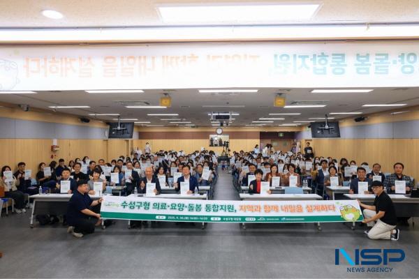 (경북=NSP통신) 김대원 기자 = 대구 수성구(구청장 김대권)는 지난달 30일 수성구청 대강당에서 ‘수성구형 통합돌봄 체계 모색을 위한 정책포럼’을 개최했다. 이번 포럼은 초고령사회에 진입한 수성구가 2026년 전면 시행되는 ‘의료·요양 등 지역돌봄의 통합지원에 관한 법률’에 대비해 지역 특성에 맞는 통합돌봄 모델을 준비하기 위해 마련됐다.