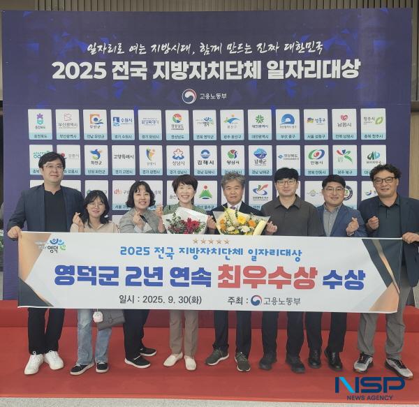 NSP통신-영덕군은 지난달 30일 고용노동부가 주최한 2025년 전국 지방자치단체 일자리 대상에서 작년에 이어 2년 연속 최우수상을 거머쥐었다. (사진 = 영덕군)