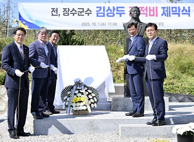 (전북=NSP통신) 김광석 기자 = 전북 장수군은 장수사과원예협동조합 광장에서 김상두 전 장수군수의 공적비 제막식을 거행했다고 2일 밝혔다.