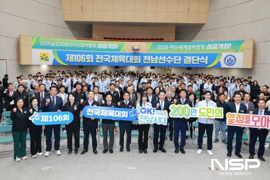 (전남=NSP통신) 김성철 기자 = 김태균 전남도의장은 전남도청 왕인실에서 개최된 ‘제106회 전국체전 참가 전남선수단 결단식’에 참석해 출전 선수와 임원들을 격려․응원했다.