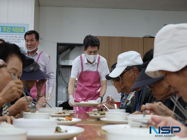 NSP통신-이강덕 포항시장이 2일 추석을 앞두고 무료급식소 만나의집을 방문해 어르신 200여 명에게 배식 봉사를 하며 감사의 마음을 전했다. (사진 = 포항시)