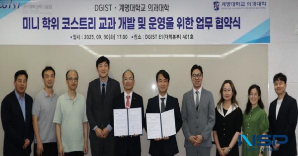 (경북=NSP통신) 김대원 기자 = 계명대학교 의과대학(학장 백원기, 이하 계명의대)과 대구경북과학기술원(DGIST)이 융합형 의(사)과학자 양성을 위한 협력에 나선다. 지난 9월 30일 양 기관은 ‘미니코스트리(Mini Co-Stream) 교과과정’의 공동 개발 및 운영을 위한 업무협약(MOU)을 체결했다고 밝혔다.