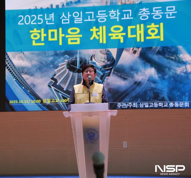 NSP통신-11일 오전 삼일고등학교 100주년 기념관에서 열린 삼일고등학교 총동문 한마음 체육대회에서 최국현 총동문회장이 개회 선언을 하는 모습. (사진 = 김종식 기자)