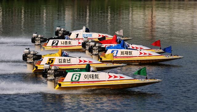 미사경정장에서 선수들이 플라잉 스타트로 경주를 시작하고 있다. (사진 = 국민체육진흥공단)