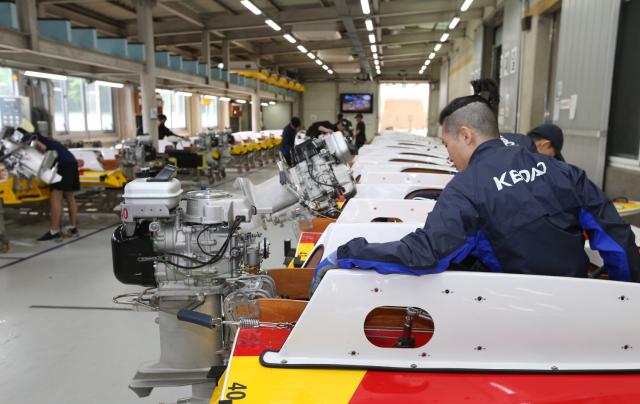 NSP통신-미사리 경정장에서 선수들이 최고의 기량을 선보이기 위해 모터보트를 정비하고 있다. (사진 = 국민체육진흥공단)