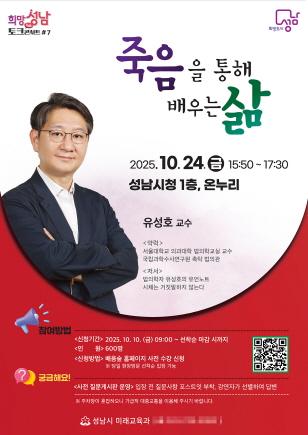 성남시, ‘희망성남 토크콘서트 7강’ 법의학자 유성호 교수 초빙 강연