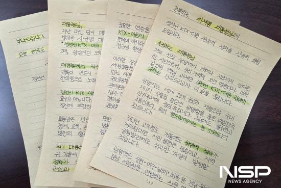 NSP통신-경전선 KTX-이음 광양역 정차 요청 서신