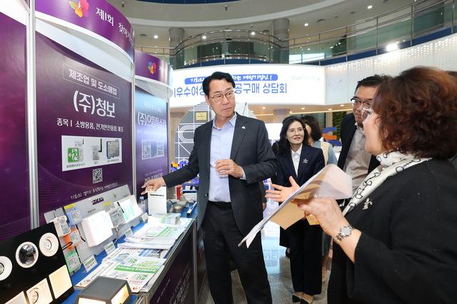 대회의실에서는 공공기관과 여성기업 간 맞춤형 상담을 통해 실질적인 계약 기회를 모색했으며 로비에서는 시청을 찾은 민원인 및 직원들을 대상으로 여성기업의 주요 제품 전시가 진행됐다.