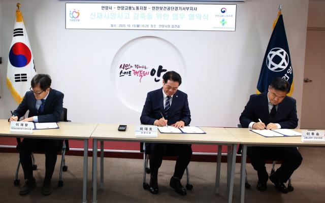 (경기=NSP통신) 서국현 기자 = 경기 안양시(시장 최대호)가 13일 고용노동부 안양지청, 안전보건공단 경기서부지사와 산재사망사고 감축을 위한 업무협약을 체결했다.