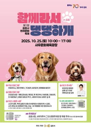 (경기=NSP통신) 조이호 기자 = 경기 김포시(시장 김병수)가 반려동물과 시민이 함께 즐기는 문화축제 ‘제1회 김포시 반려문화축제-함께라서 댕댕하개 in 김포’를 오는 25일 사우문화체육광장에서 개최한다.