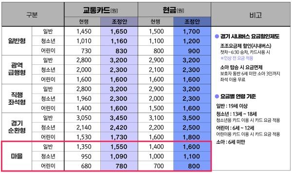 NSP통신-경기도 시내·광역버스, 성남시 마을버스 요금 인상표. (이미지 = 성남시)