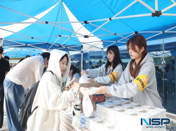 NSP통신-영남이공대학교는 14일 천마스퀘어 잔디광장에서 클로버의 시험 응원 간식 DAY! 행사를 열고 중간고사를 앞둔 재학생들에게 응원의 마음을 전했다. (사진 = 영남이공대학교)