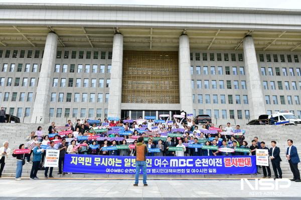 (전남=NSP통신) 서순곤 기자 = 여수시의회는 14일 MBC본사와 국회에 항의 방문하며 여수MBC 순천 이전 철회를 강력히 촉구했다.