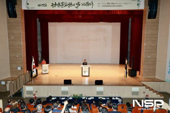 기념식에는 김영록 지사와 22개 시·군 문화원 회원, 도민 등 600여 명이 참석한 가운데 식전공연에 이어 개식선언, 문화비전 선언문 낭독, 유공자 시상, 기념촬영 순으로 진행됐다.