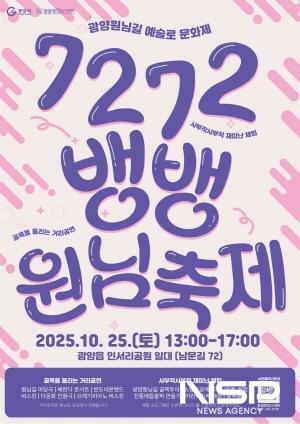 (전남=NSP통신) 김성철 기자 = 광양문화도시센터(센터장 박시훈, 이하 ‘센터’)는 오는 10월 25일 오후 광양읍 인서리공원 일대에서 광양원님길 브랜드 축제 ‘7272뱅뱅원님축제’를 개최한다고 밝혔다.