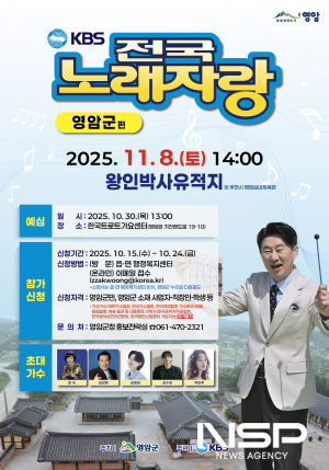 (전남=NSP통신) 강현희 기자 = 영암군(군수 우승희)이 KBS전국노래자랑 예심 참가자를 15일부터 24일까지 선착순 300명을 모집한다.