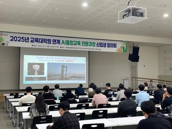 (경북=NSP통신) 조인호 기자 = 경상북도교육청(교육감 임종식)은 17일 구미시에 있는 새마을운동테마공원 연수관에서 AI융합교육 전문과정 신입생 45명을 비롯해 졸업생과 관계자 등 60여 명이 참석한 가운데 ‘2025년 교육대학원 연계 AI융합교육 전문과정 신입생 협의회’를 개최했다.
